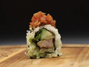 Tuna, sriracha sauce, kanikama, avocado, cucumber, cream cheese