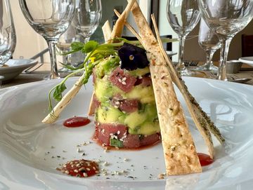 Fresh tuna served with avocado, mix of sesame seeds with vinaigrette of sesame oil and soy sauce, lime and a pinch of spice.